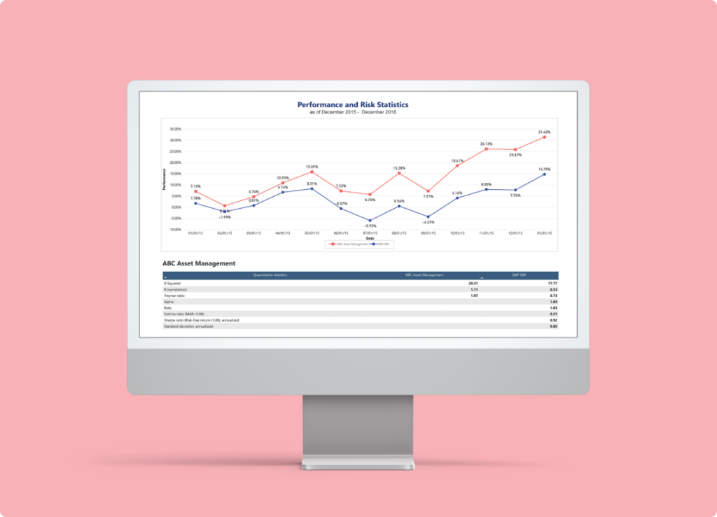 Upgrade your performance tracking capabilities. Benefit from custom functions that enable you to use proprietary calculations and integrate your Excel data so you don’t need to reinvent the wheel.